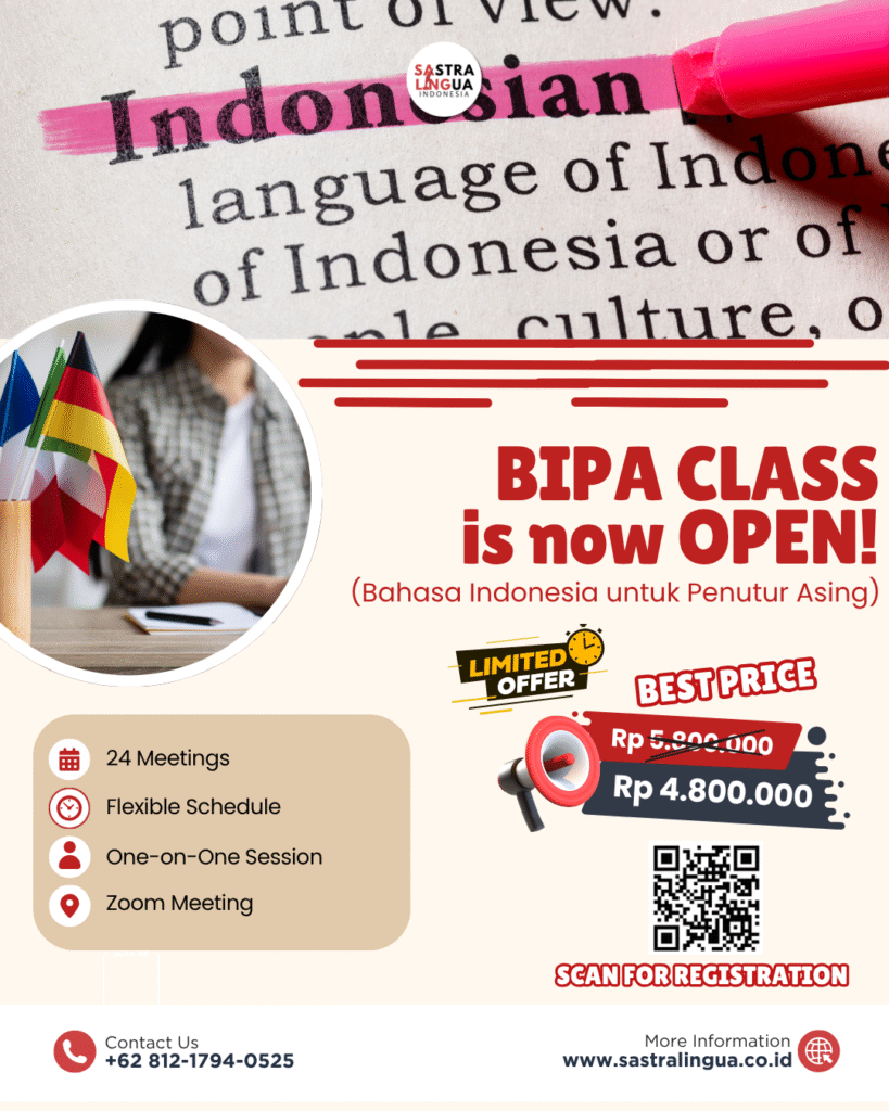 Oleh karenanya, tak ada salahnya apabila kamu warga negara asing dan berniat mempertajam public speakingmu dalam bahasa Indonesia, Sastra Lingua Indonesia memiliki program Bahasa Indonesia untuk Penutur Asing dengan pengajar profesional dan berpengalaman. Informasi seputar program BIPA kami, silakan cek di sini.